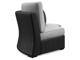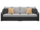 Resin wicker on an aluminum frame. Stainless steel hardware. Porcelain top umbrella table. Umbrella hole. Nuvella high performance fabrics. P792-835 has Nuvella high performance light gray fabric. Includes two throw pillows.