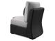 - Includes 5 pieces with cushions: 2-piece loveseat, curved corner chair and 2 armless chairs