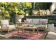 Collection features durable eucalyptus wood with an antiqued teak color paint finish. The finish is done in 5 steps: stain, sealer, glaze and 2 top-coats of paint. All with high performance Nuvella fabric. Rectangular dining table is 81" x 42". For the bar table set, the 42" x 42" table can be used to make both 3-piece and 5-piece sets. Assembly required on all skus. P801-854 has 4 throw pillows included; P801-877 has 2 throw pillows included.