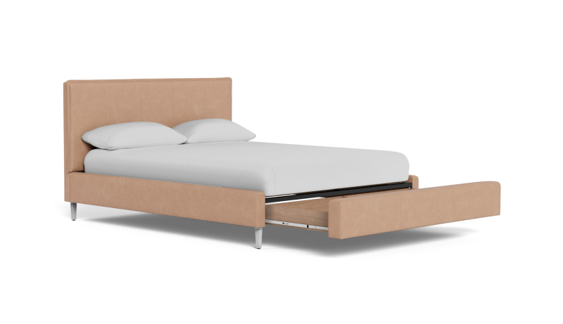 Sebring creates an exceptionally inviting contemporary look thanks to its pillow top face and unique flange detail. Available in 44" or 54" for a choice of size that will best suit your space. Take advantage of under bed space with drawer storage, now available with any Palliser upholstered bed style. With an integrated drawer that opens at the foot of the bed, it's designed to house all your bedroom essentials like extra blankets, linens, and clothes. The carefully constructed frame features drawer storage on a high leg, which allows for a slat support system that eliminates the need for a box spring. Inspired by minimalist living, this versatile choice is ideal for smaller spaces without compromising style.