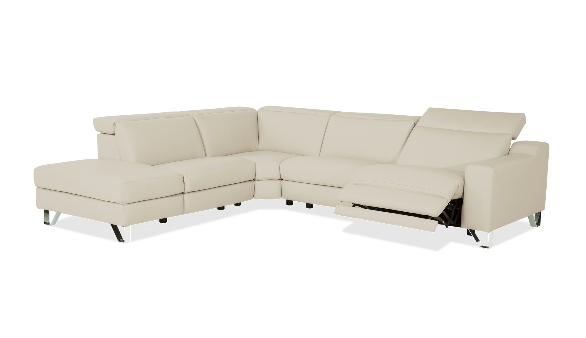 Enjoy the power and prestige that comes with the Tabor collection. Wide seating and a strong contemporary profile are elevated by sculptural legs available in matte black or chrome. High-resiliency foam in the seats and back provides support, while power recline and a power adjustable headrest invite total relaxation.