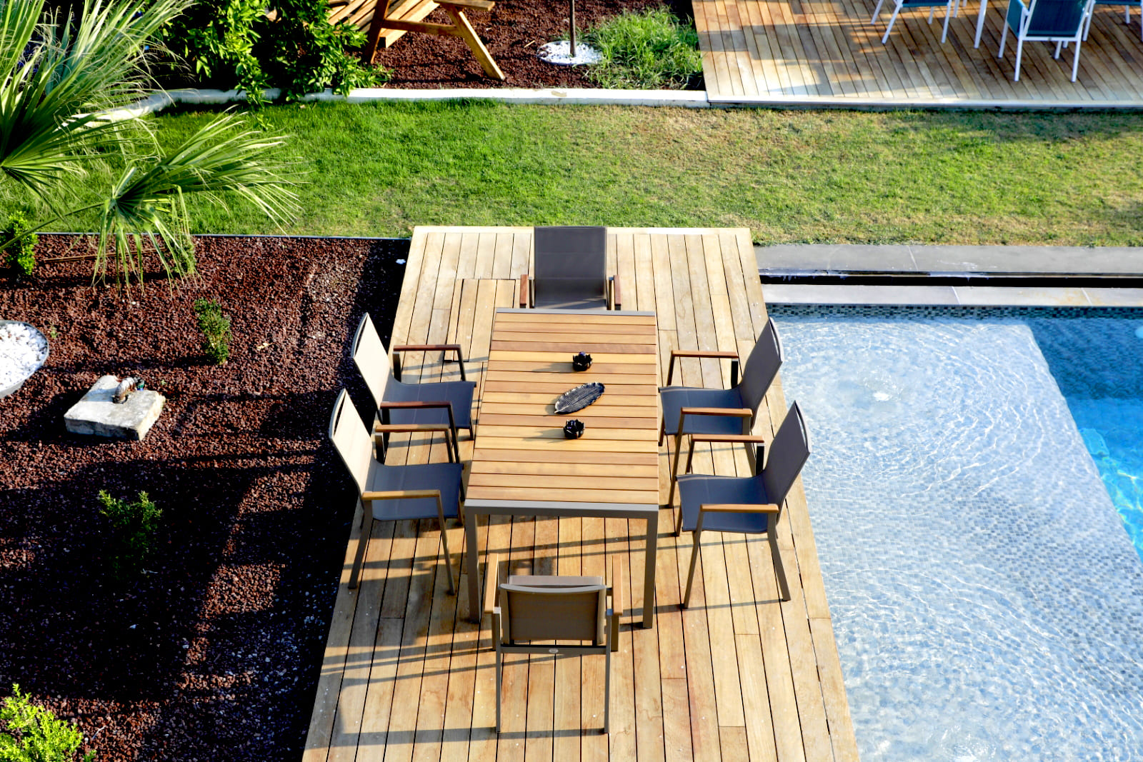 - Teak, porcelain and laminate tabletop options are available.