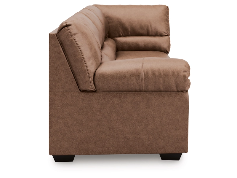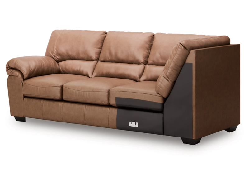 This left-arm facing sofa with corner wedge is made with faux leather upholstery. Pairs with other items in the series to make a sectional.