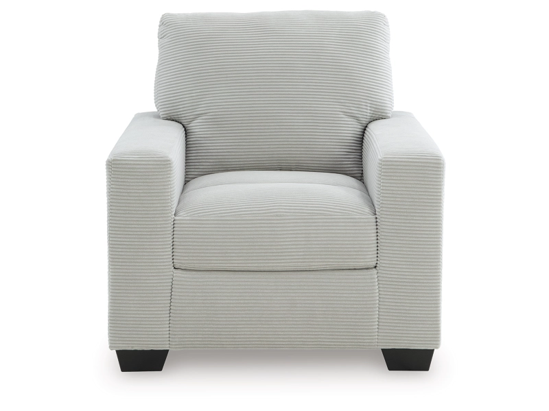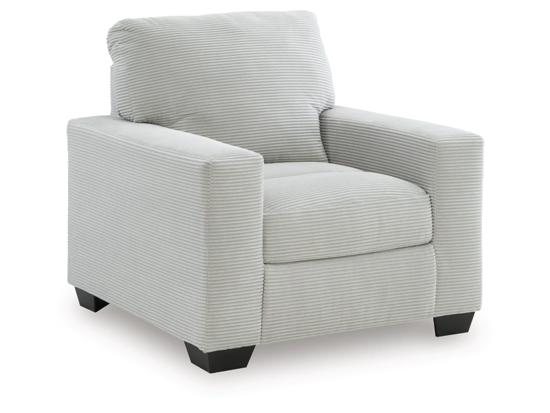 The crisp neutral hue and striking design details of this chair create a living room that expertly reflects your modern taste. For irresistibly cool textural appeal, the ultra-soft fabric is enhanced by a small-scale corded look. With a clean-lined silhouette complete with track arms, this chair allows you to take a trend-right approach to everyday living.