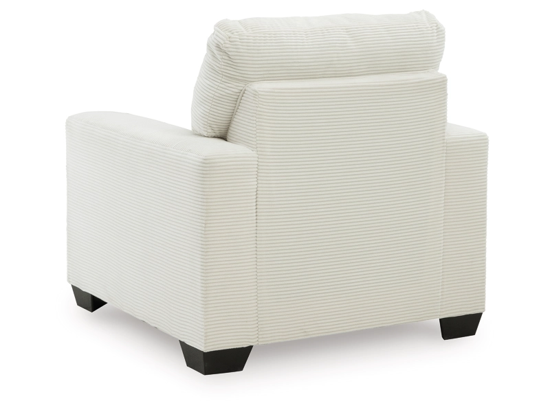The crisp neutral hue and striking design details of this chair create a living room that expertly reflects your modern taste. For irresistibly cool textural appeal, the ultra-soft fabric is enhanced by a small-scale corded look. With a clean-lined silhouette complete with track arms, this chair allows you to take a trend-right approach to everyday living.