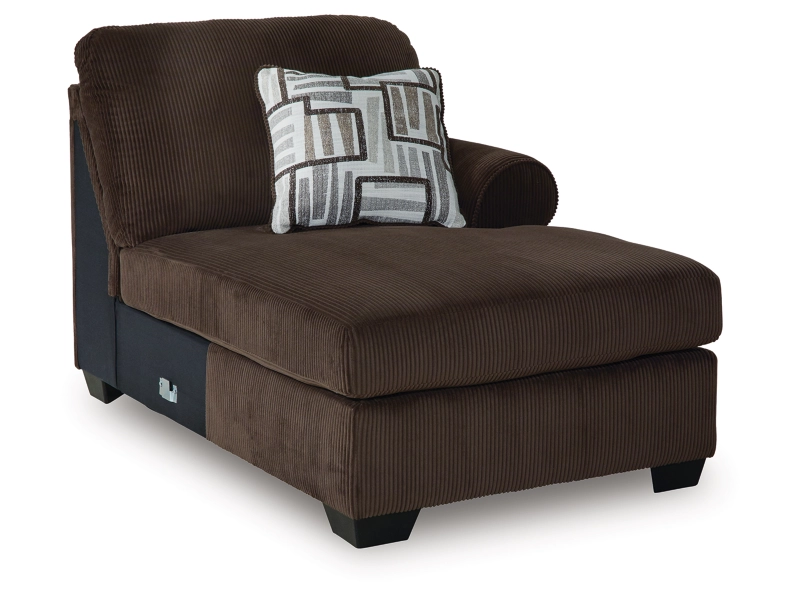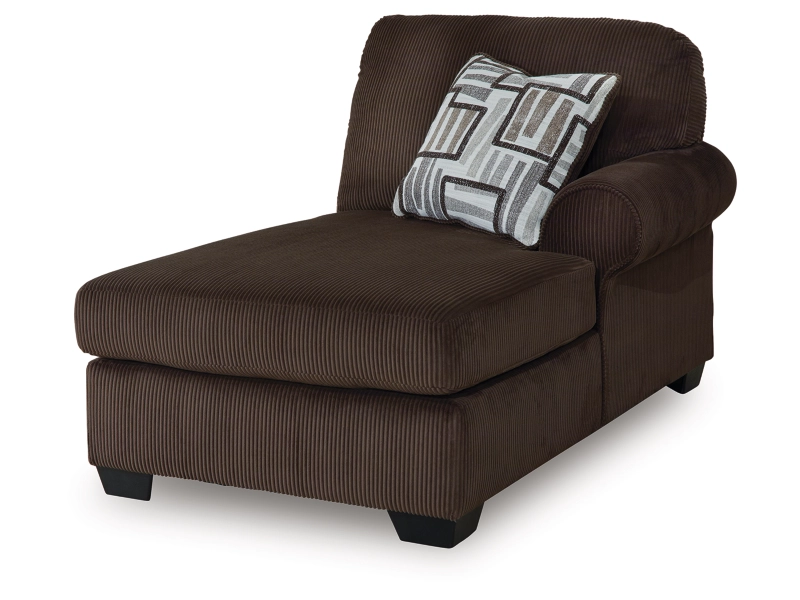 This right-arm facing corner chaise is made with polyester upholstery. Pairs with other items in the series to make a sectional.