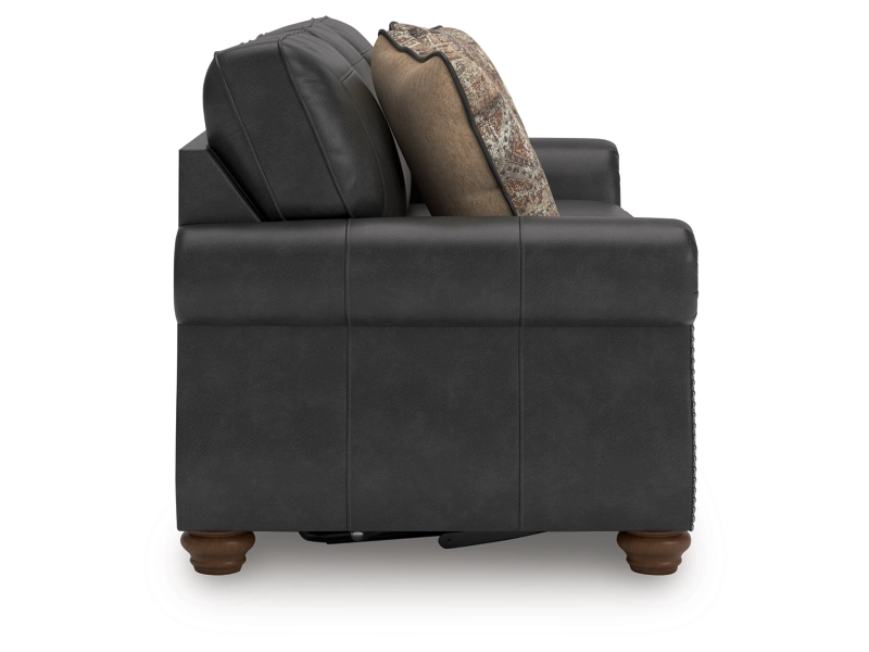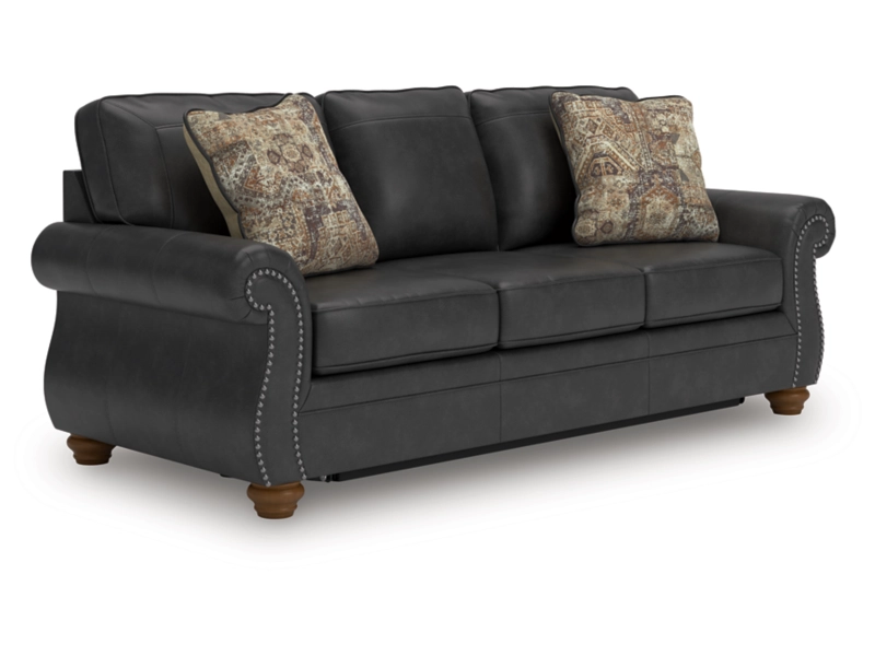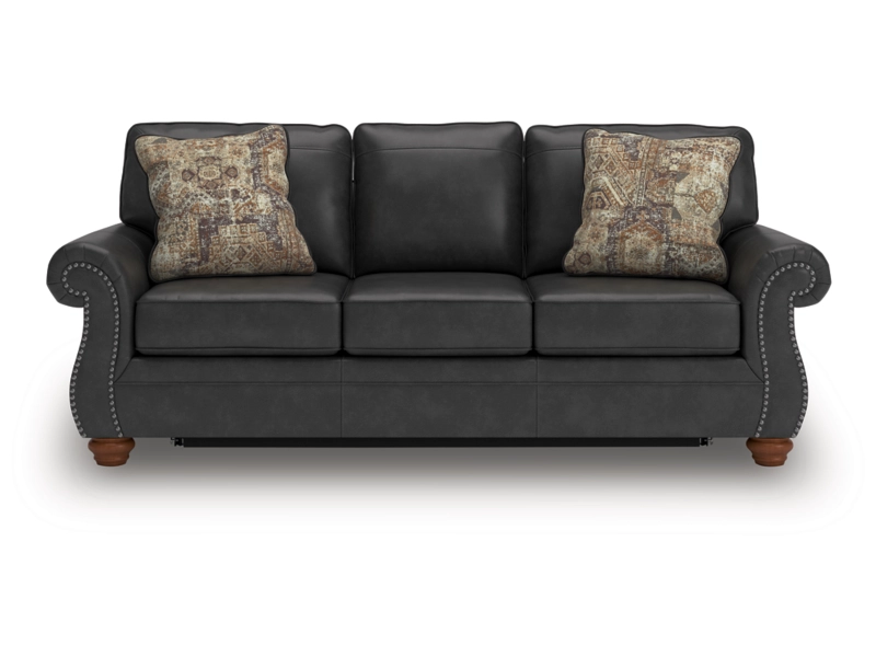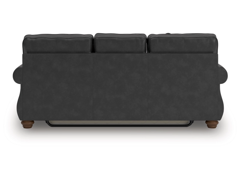 Everyone can have the best rest in the house with this queen sofa sleeper. Its nailhead trim puts the finishing touches on the traditional roll arms you love. The sofa's comfy, durable cushions—wrapped in a rustic yet sophisticated faux leather—keep you feeling relaxed, while its turned legs show that style and quality flow from top to bottom. A pull-out queen mattress made with quality memory foam comfortably accommodates overnight guests.