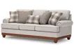 Transitional farmhouse styling. Upholstered in novelty yarns combine with chenille yarns to craft a plain fabric that is both organic, dressy and soft to the touch with the use of tonal colors for added depth and dimension. Toss pillow fabrics are washed, multicolor window-pane plaid paired with a textured solid layered in rich colors with soft chenille for a modern farmhouse look. Loose reversible cushions and attached boxed backs. Accented with a full wrap around base and decorative turn legs.