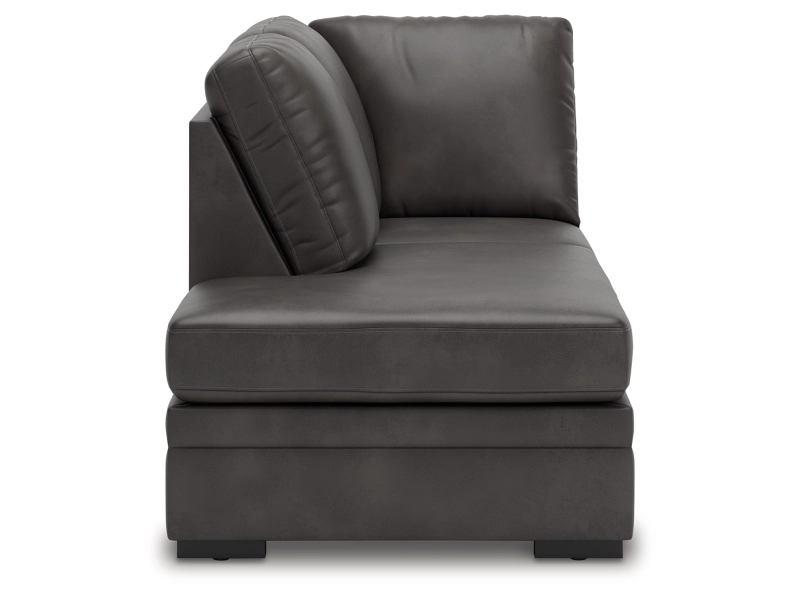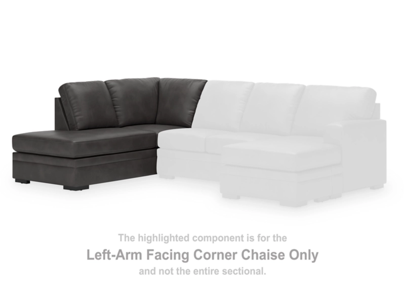 This left-arm facing corner chaise is made with faux leather upholstery. Pairs with other items in the series to make a sectional.