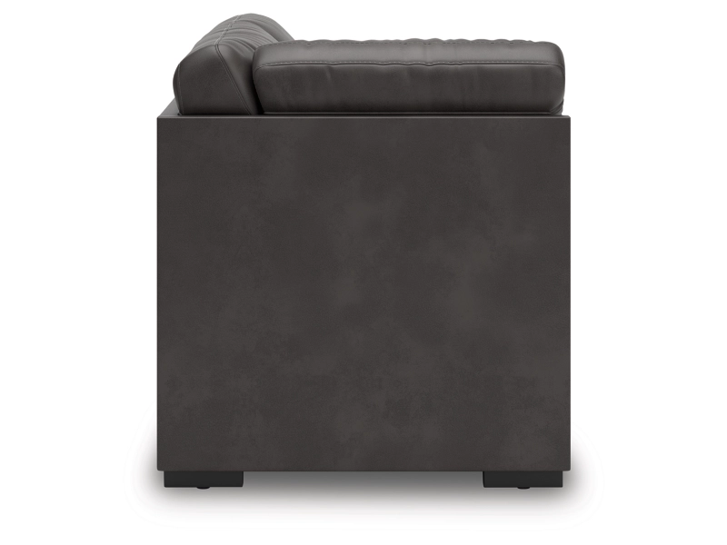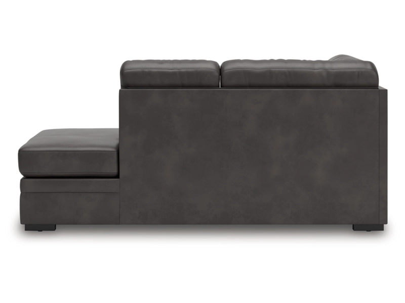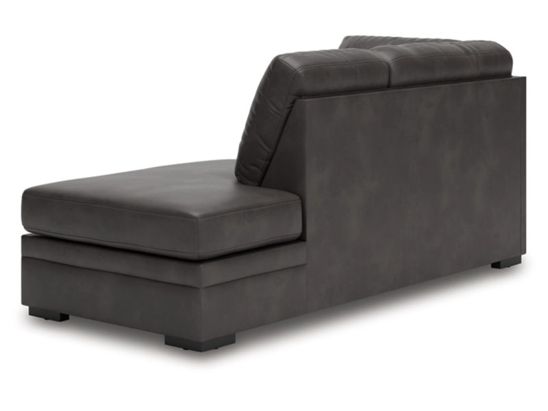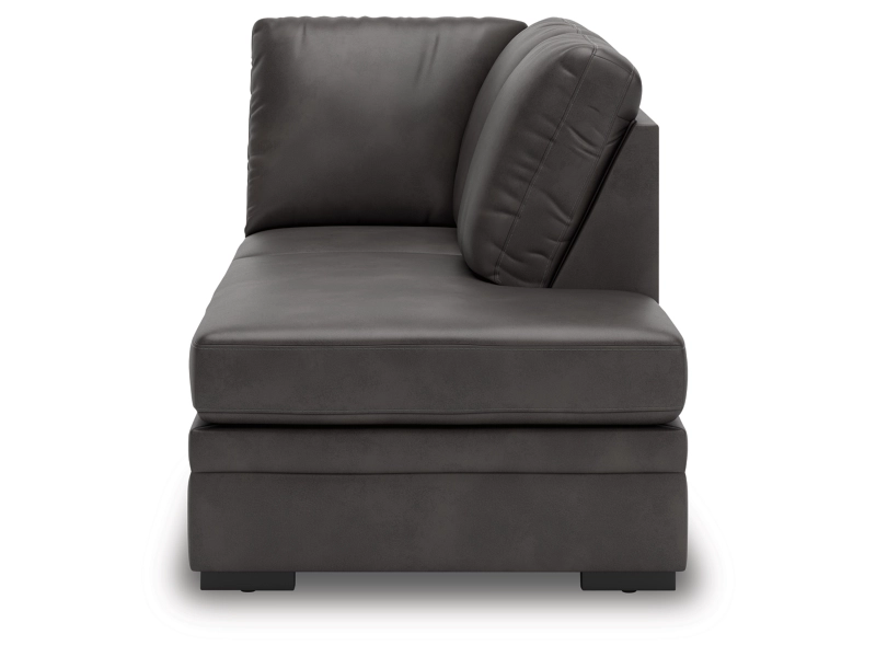 This right-arm facing corner chaise is made with faux leather upholstery. Pairs with other items in the series to make a sectional.