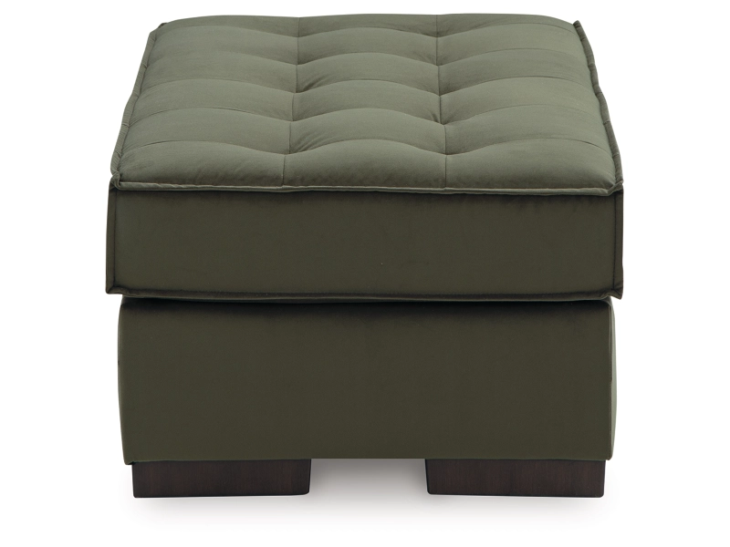 This sleek oversized accent ottoman offers a highly contemporary look with plenty of space to spread out. Dramatic tufted detailing and luxurious upholstery in a rich olive color create a sophisticated atmosphere. This ottoman is perfect for those who love to entertain, or simply relax, in uptown style and comfort.