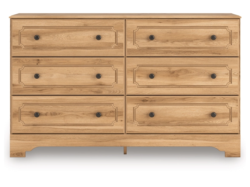 Country rustic. Vintage inspired. However you see it, you’re sure to be charmed by this dresser. Adorned with chic drawer knobs and a warm oak grain finish, it offers a relaxed mix of picturesque aesthetics. Its storage space gracefully welcomes clothes, linens and other bedroom necessities. With an air of easygoing elegance, this dresser lets you drift away to a simpler time and place.