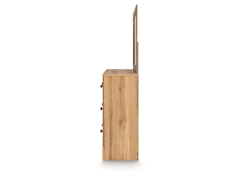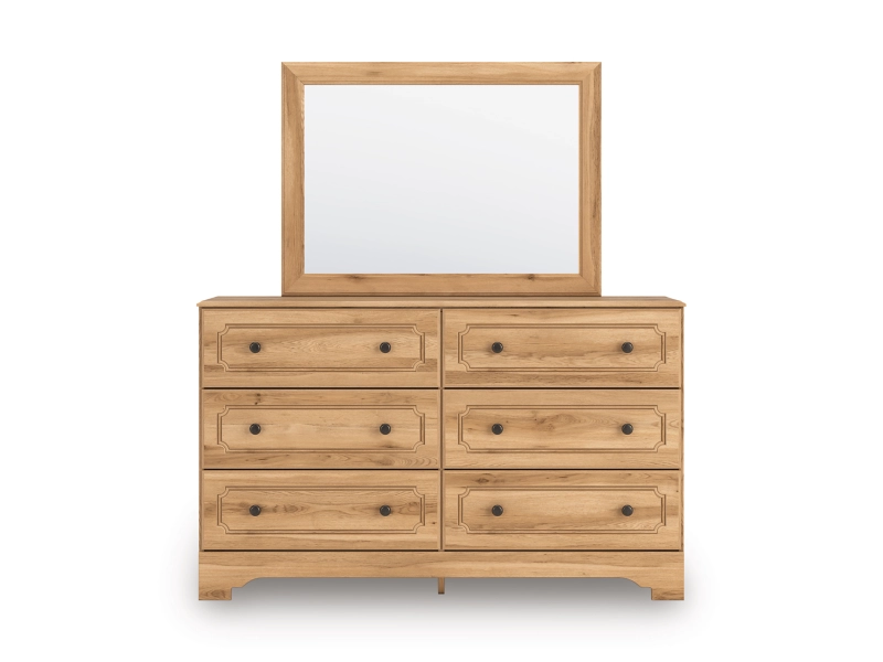 Country rustic. Vintage inspired. However you see it, you’re sure to be charmed by this dresser with mirror. Adorned with chic drawer knobs and a warm oak grain finish, it offers a relaxed mix of picturesque aesthetics. Its storage space gracefully welcomes clothes, linens and other bedroom necessities. With an air of easygoing elegance, this set lets you drift away to a simpler time and place.