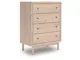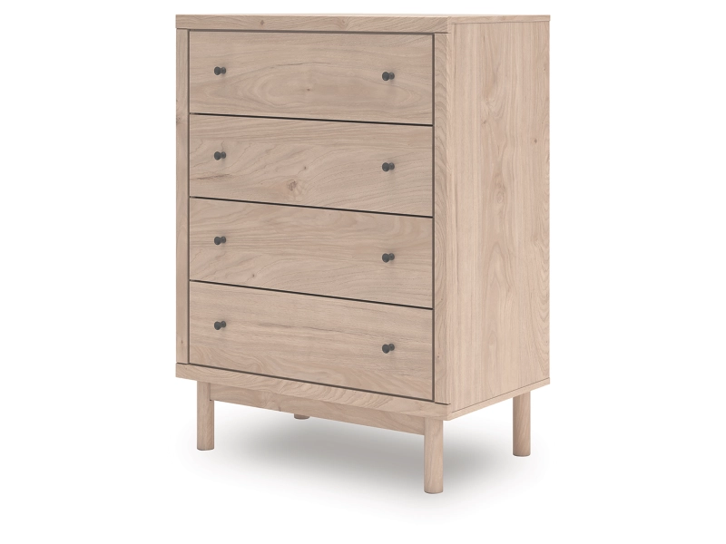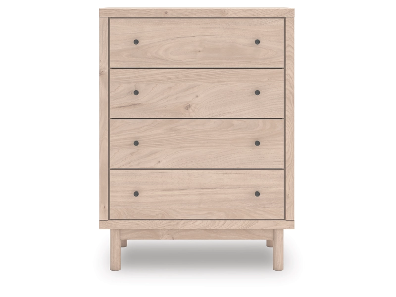 Looking for a chest of drawers that's both playful and practical for your little one? This piece is just the ticket. Its charming design and light wood finish create a whimsical and inviting atmosphere. Four smooth-gliding drawers provide plenty of storage, so there's no excuse for a messy room.