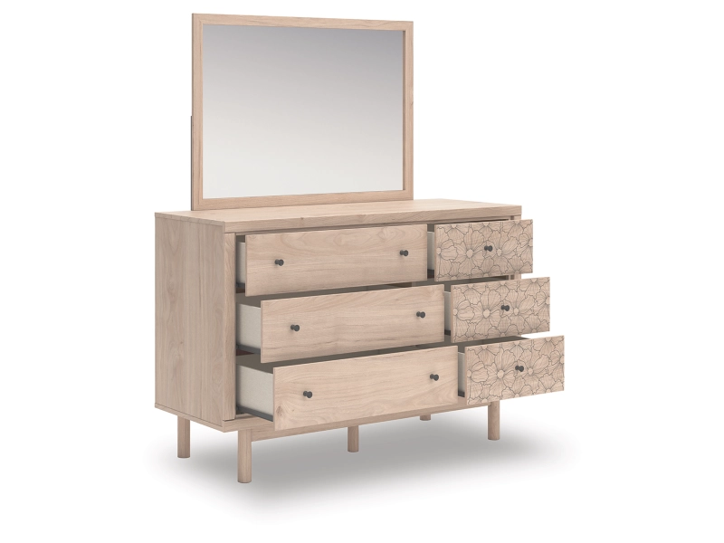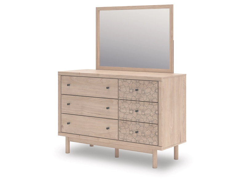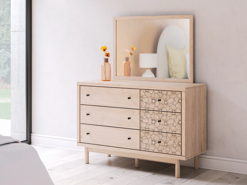 Looking for a dresser and mirror for that are both playful and practical for your little one? This set is just the ticket. The dresser’s charming design and light wood finish create a whimsical and inviting atmosphere. Drawers accented with a floral pattern add a free-spirited vibe and plenty of storage, while the mirror is ready to hang right out of the box. So there's no excuse for a messy room or messy hair.