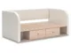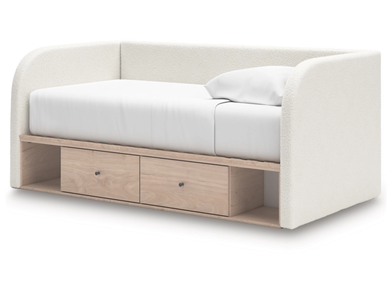 Looking for a twin upholstered daybed with storage that's both playful and practical for your little one? Shapella is just the ticket. Softly rounded shaping rocks a boho vibe, while light upholstery creates a casually inviting look that whispers “sweet dreams.” Spacious drawers underneath provide plenty of storage, so there’s no need for a messy room.