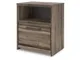 Weathered brown finish over replicated Oak grain with authentic touch. Contemporary handles in an antiqued gunmetal finish. Cases feature faux linen finished drawer interiors. Modern bookcase headboard includes a dimming LED light under the shelf. Side roller glides for smooth operating drawers. Queen and king storage footboard (54S,56S) requires the B100-13 or B100-14 roll slats. Mirror (36) has the versatility to mount on the dresser or to the wall horizontally or vertically. Slim profile dual USB chargers located on the back of the nightstand top and the side of the headboards. Queen (57) and King (58) headboards can attach to a bolt-on metal bed frame B100-31 or B100-66 respectively. Safety is a top priority, clothing storage units are designed to meet the most current standard for stability, ASTM F 2057 (ASTM International). Drawers extend out to accommodate maximum access to drawer interior while maintaining safety.