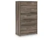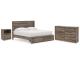 Casually cool style and lots of storage go hand in hand with this bedroom package. A weathered brown finish over replicated oak grain creates an easygoing vibe, setting the scene in your restful retreat. The set's clean lines and modern handles provide a fuss-free look.