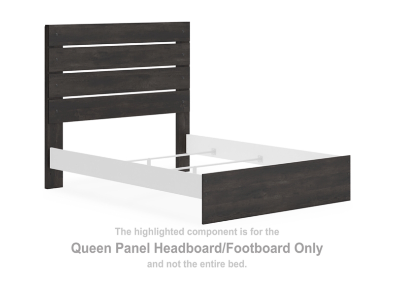 This queen panel headboard/footboard set is made with engineered wood (MDF/particleboard/plywood) and decorative laminate. Pairs with other items in the series to make a bed kit.