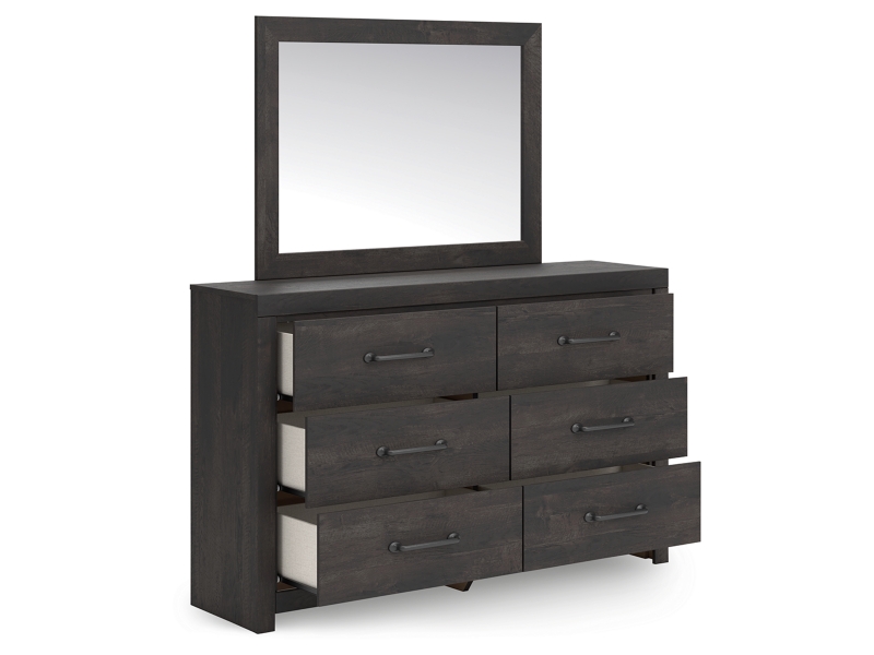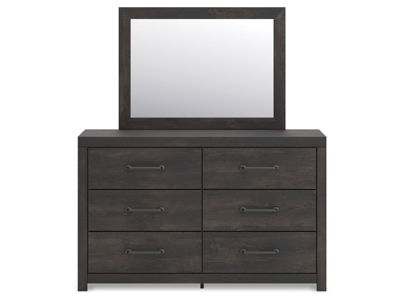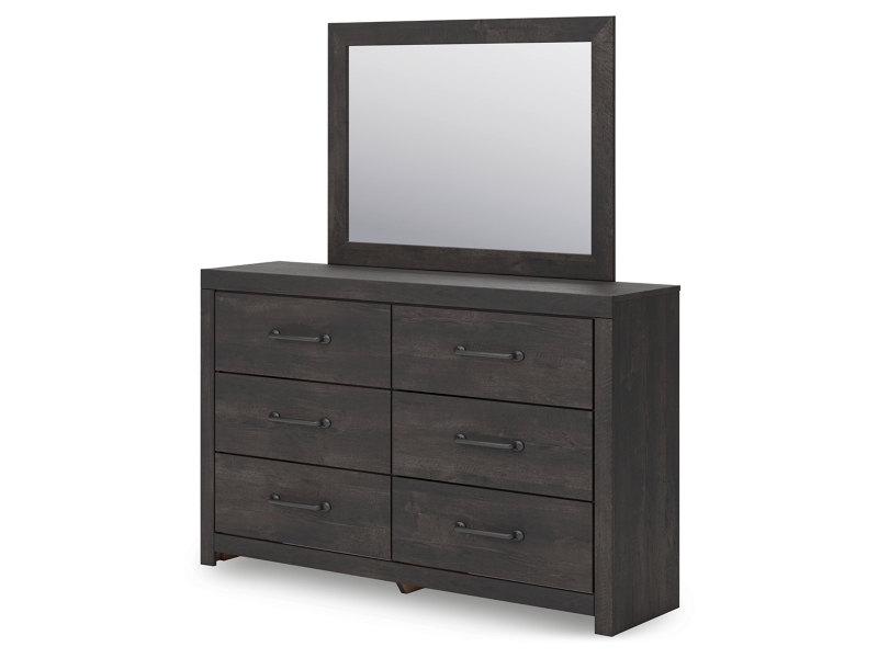 This dresser with mirror puts a casually chic twist on everyday function. Its rustic charcoal finish pairs well with other neutrals and pops of color alike, giving you the flexibility to change up your aesthetic as you please. Smooth-gliding drawers keep clothes and bed linens stored in style.
