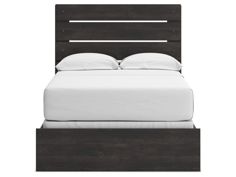 This full panel bed puts a casually chic twist on everyday function. Its rustic charcoal finish pairs well with other neutrals and pops of color alike, giving you the flexibility to change up your aesthetic as you please. From morning to bedtime, it completes your restful retreat in exceptional form.
