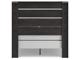 Rustic charcoal finish over replicated Oak woodgrain with authentic touch. Large scaled dark colored handles. Cases feature a framed front and pilasters. Panel beds twin (53), full (55), queen (71), and king (72) feature headboard footboard packed together, bed rails twin (83), full (86), queen (96), king (97) required. Side roller glides for smooth operating drawers. Drawers lined with a faux linen laminate for a clean, finished look. Slim profile dual USB chargers located on the back of the night stand top and the side of the headboards. All side storage options (50,150,60,160) requires the use of the B100-11, B100-12, B100-13 or the B100-14 roll slats. All underbed storage units (50,150,60,160) accommodates to 10.5"W x 10.5"D x 11"H cube storage bins. Mirror (36) has the versatility to be mounted on dresser or wall horizontally or vertically. Safety is a top priority, clothing storage units are designed to meet the most current standard for stability, ASTM F 2057 (ASTM International). Drawers extend out to accommodate maximum access to drawer interior while maintaining safety. Minor assembly required.