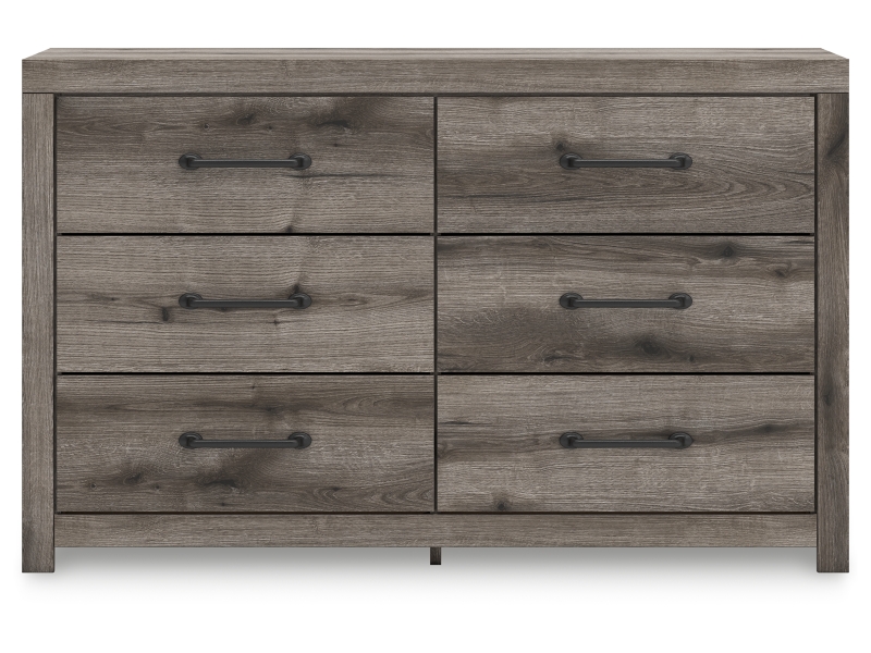 Combining a casual aesthetic with functional flair, this dresser suits styles from rustic to industrial. Its smooth-gliding drawers store everyday essentials with ease, from clothes to bed linens. Elongated drawer pulls in a dark hue polish off the look, harmonizing beautifully with the weathered gray wood grain.