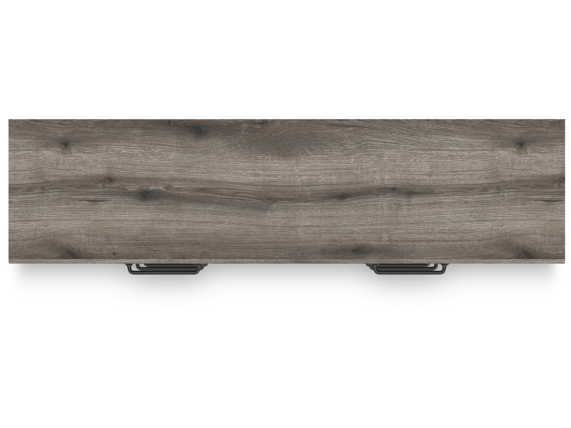 - Weathered gray finish over replicated oak grain