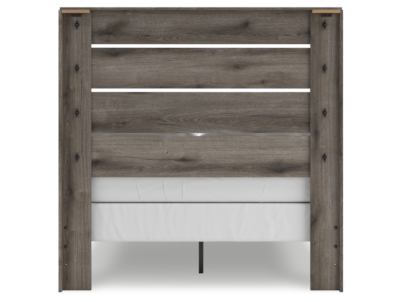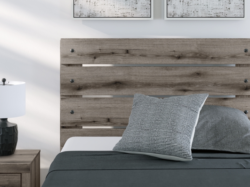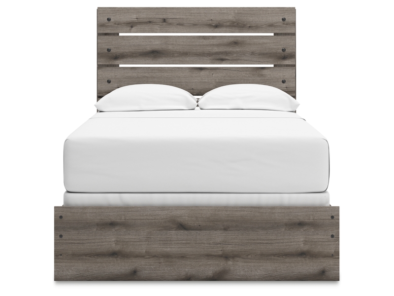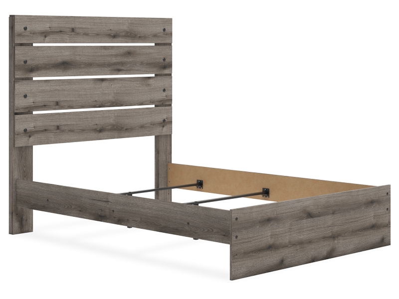 Combining a casual aesthetic with functional flair, this full panel bed suits styles from rustic to industrial. The headboard's slatted panel design has an easygoing character that's sure to please. Dressed in a chic weathered gray hue, it brings a charmingly curated vibe to bedtime.