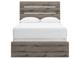 Weathered gray finish over replicated Oak woodgrain. Large scaled dark colored handles. Cases feature a framed front and pilasters. Panel beds twin (53), full (55), queen (71), and king (72) feature headboard footboard packed together, bed rails queen (96), king (97) required. Side roller glides for smooth operating drawers. Drawers lined with a faux linen laminate for a clean, finished look. Slim profile dual USB chargers located on the back of the night stand top. All side storage options (50,150,60,160) requires the use of the B100-11, B100-12, B100-13 or the B100-14 roll slats. All under bed storage units (50,150,60,160) accommodates to 10.5"W x 10.5"D x 11"H cube storage bins. Mirror (36) has the versatility to be mounted on dresser or wall horizontally or vertically. Safety is a top priority, clothing storage units are designed to meet the most current standard for stability, ASTM F 2057 (ASTM International). Drawers extend out to accommodate maximum access to drawer interior while maintaining safety. Minor assembly required.