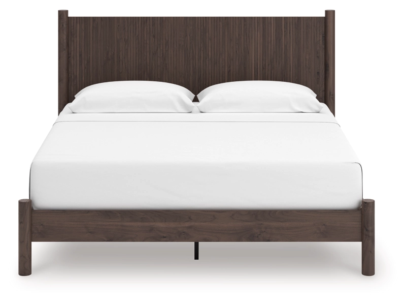 Crafted with both form and function in mind, this king panel platform bed brings a dash of retro-cool character to your modern boho aesthetic. Reeded accents add an on-trend touch to its classic silhouette. Warmly welcoming with a rich brown finish, the bed pairs well with muted hues, earth tones and other neutrals alike. What a refined take on easygoing style.