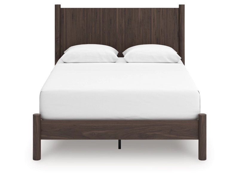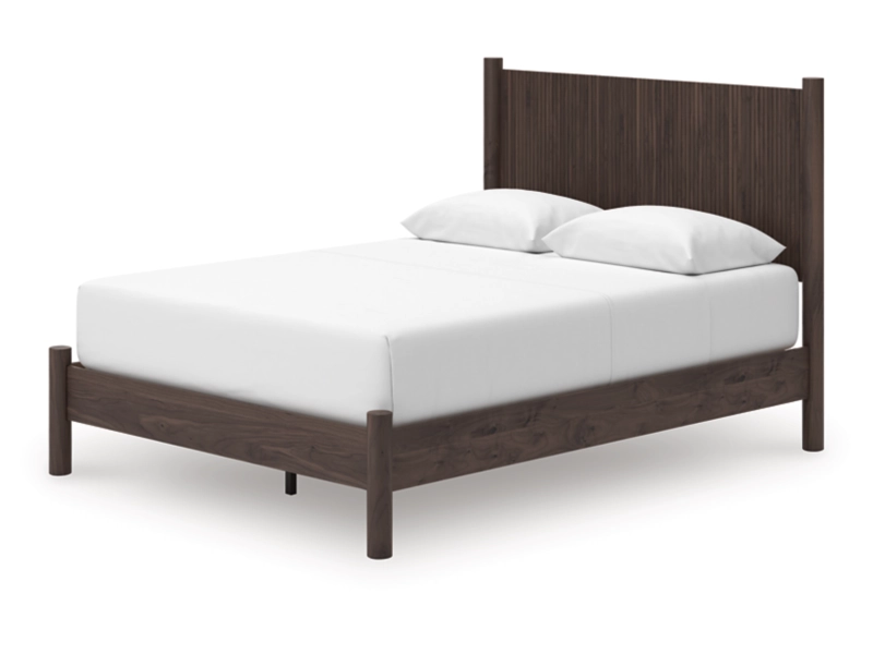 Crafted with both form and function in mind, this queen panel platform bed brings a dash of retro-cool character to your modern boho aesthetic. Reeded accents add an on-trend touch to its classic silhouette. Warmly welcoming with a rich brown finish, the bed pairs well with muted hues, earth tones and other neutrals alike. What a refined take on easygoing style.