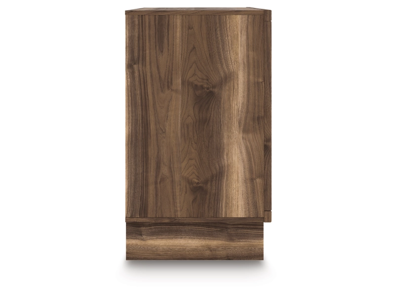 Warm natural brown finish over replicated Walnut grain with authentic touch. Cases feature a framed front and pilasters. Contemporary case design features integrated drawer pull. Side roller glides for smooth operating drawers. Drawer interiors finished with a replicated linen design. Both USB and wireless charging options are provided with the nightstand. Headboards (53,57,58,87) are compatible with footboard options (52,54,56,84) and require the B100-11, B100-12,B100-13 or B100-14 roll slats respectively. All side storage options (50,60,150,160) requires the use of the B100-11, B100-12,B100-13 or the B100-14 roll slats. Headboards (53,57,58,87) can attach to a bolt-on metal bed frame B100-21, B100-31 or B100-66 respectively. Mirror (36) has the versatility to be mounted on dresser or wall horizontally or vertically. Safety is a top priority, clothing storage units are designed to meet the most current standard for stability, ASTM F 2057 (ASTM International). Drawers extend out to accommodate maximum access to drawer interior while maintaining safety.