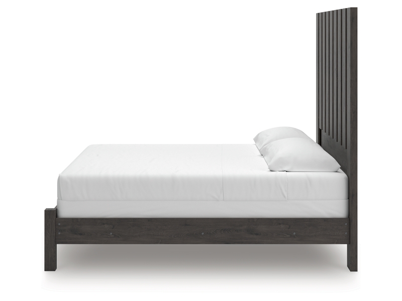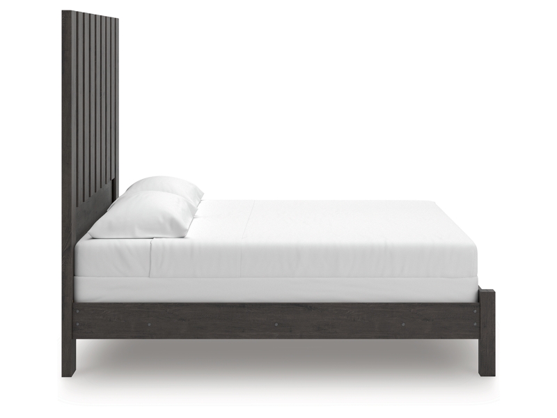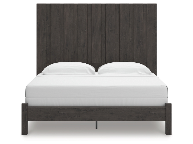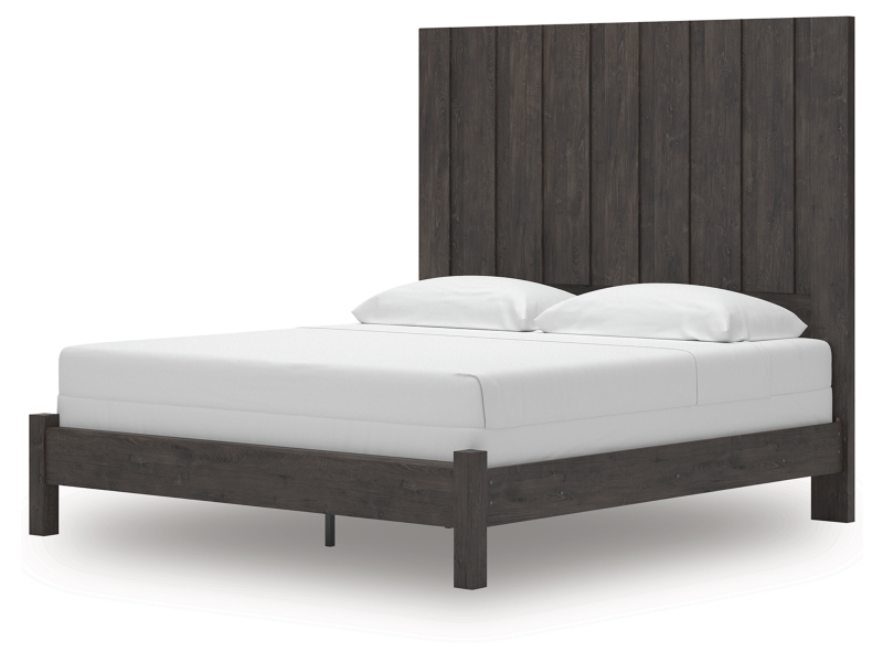Find serene simplicity in the clean lines and dark neutral tones of this king panel bed. It’s a sincere approach to modern elegance, giving you high style at a great value. Vertical planks decorate the generously scaled headboard to give the illusion of additional height, polishing off the piece in grand fashion.