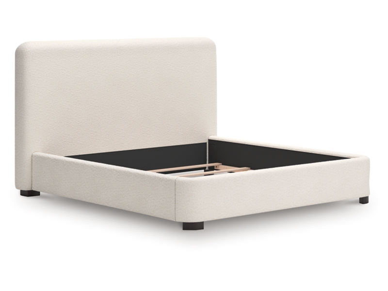 Casual Lifestyle design with a modern vibe. The upholstered wing bed is constructed with engineered wood frames, foam cushion and a stylish Next-gen Nuvella performance fabric for worry free cleanability. Side Rails feature laminated solid hardwood slat support rails (or LVL) with glued and screwed blocking for added strength.