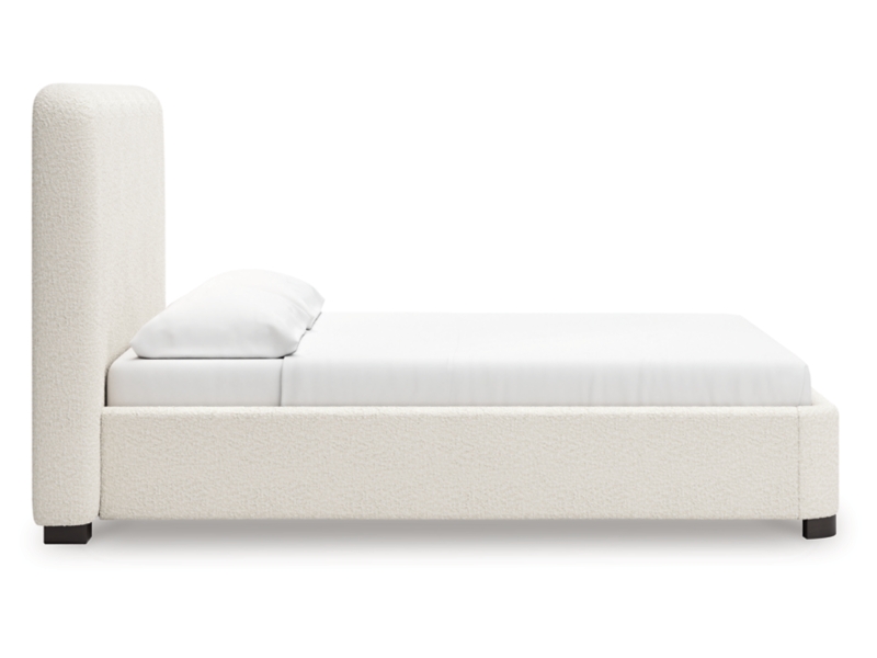 Casual Lifestyle design with a modern vibe. The upholstered wing bed is constructed with engineered wood frames, foam cushion and a stylish Next-gen Nuvella performance fabric for worry free cleanability. Side Rails feature laminated solid hardwood slat support rails (or LVL) with glued and screwed blocking for added strength.
