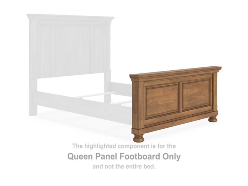 This queen panel footboard is made with pine solids, veneer and MDF substrate. Pairs with other items in the series to make a bed kit.