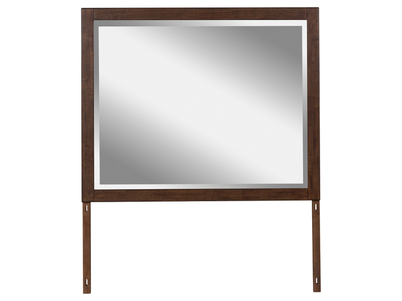This bedroom mirror is made with hardwood solids. Pairs with other items in the series to make a dresser and mirror kit.