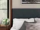 - Includes canopy, upholstered poster headboard, footboard, rails, posts and slats