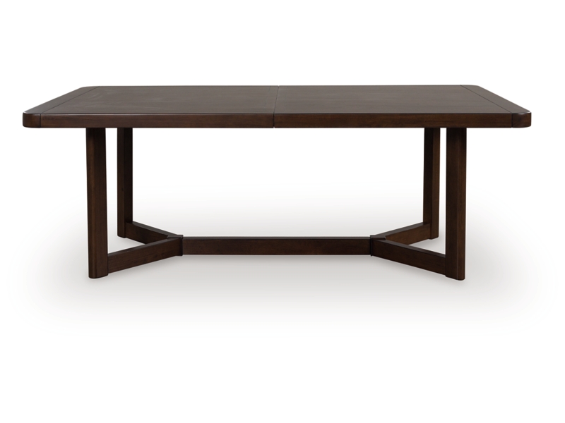 Casual contemporary styling with a decidedly modern vibe. This dining extension table dresses your dining spot in on-trend elegance with its rich warm brown finish. A softly rounded top frame and a fashionable double wishbone base beckon everyone to gather around. Now there’s a simply stunning show of great taste.