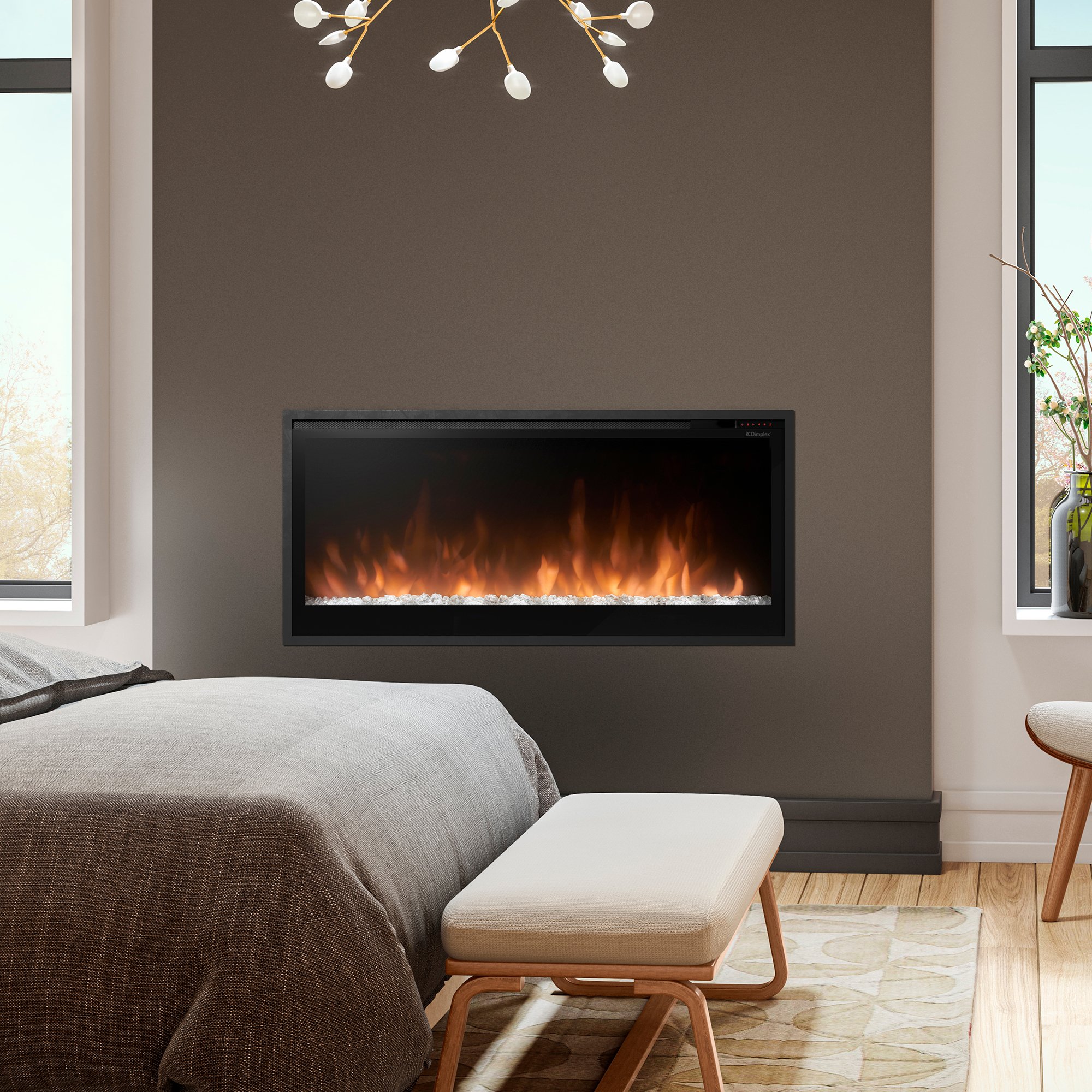 - With a slim depth of less than 4in, this fireplace fits flush into a standard 2x4in wall