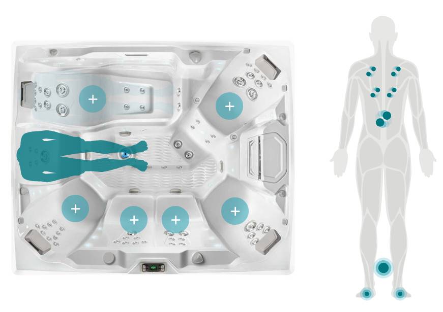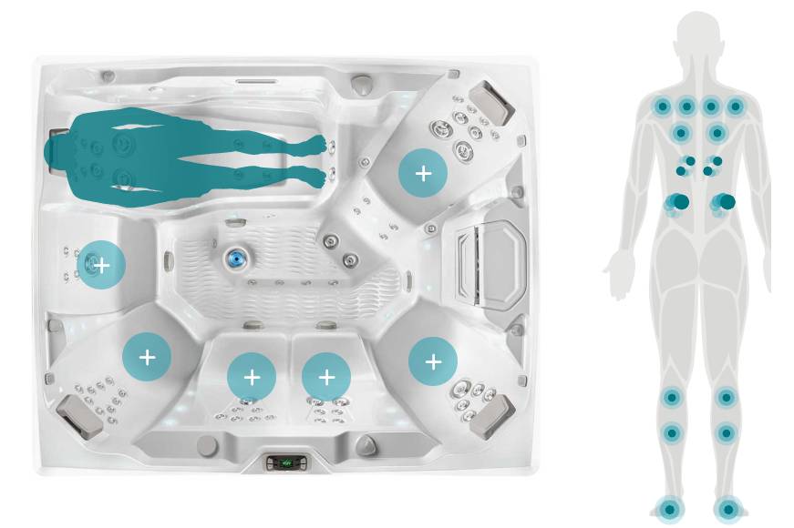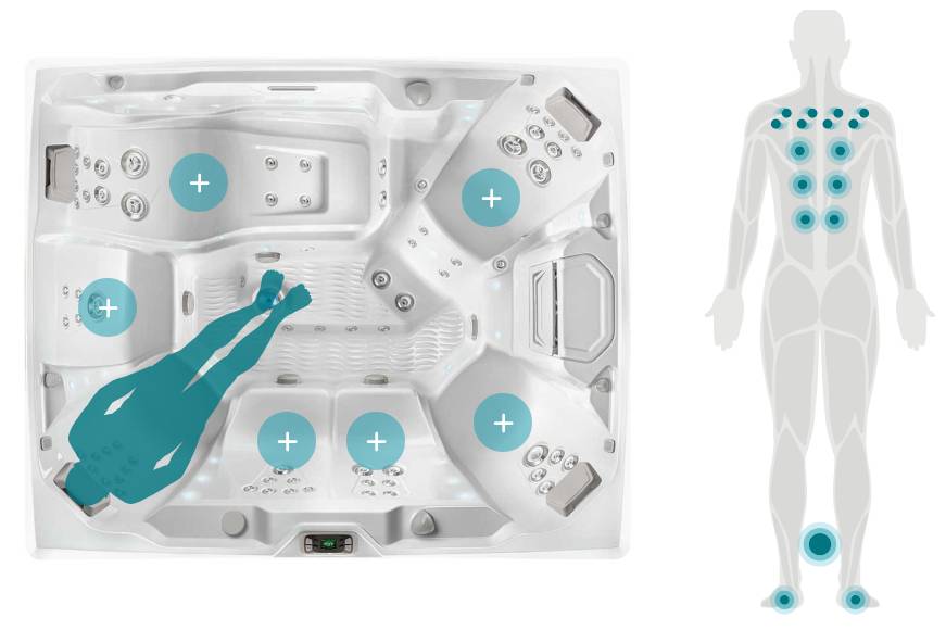 Comfortable seats with purposefully arranged jet systems work together to