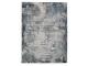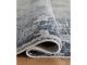 Machine woven cut pile, abstract design in shades of blue, gray and cream. 15mm pile. Polyester, backed with latex. Spot cleaning only. Rug pad recommended.