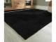 Machine woven shag, solid in black. 15mm pile. Polyester, backed with TPR/polyester/cotton blend. Machine washable. Rug pad recommended.
