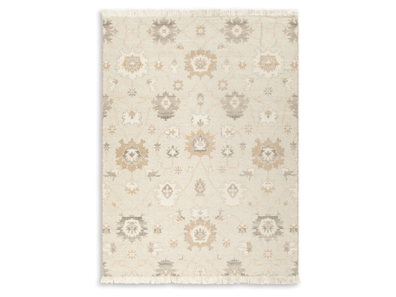 Bring modern life into balance with the rhythms and beauty of nature. This area rug has the vintage look of an heirloom. Blooming with graceful florals in neutral tones and surrounded by fringe edging, it adds style to any lounge space.