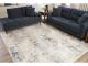 Machine woven, abstract design in shades of ivory, blue, gray and tan. 9 mm pile. Polyester, backed with jute. Spot clean only. Rug pad recommended.