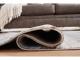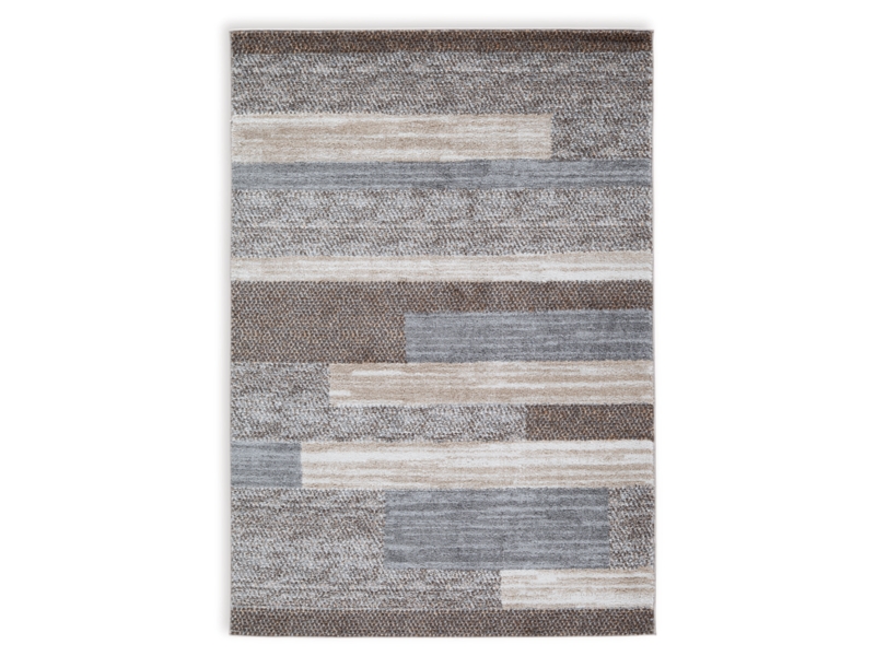 Machine woven, stripe design in shades of brown, gray and cream. 11mm pile. Polypropylene, backed with jute. Spot clean only. Rug pad recommended.