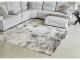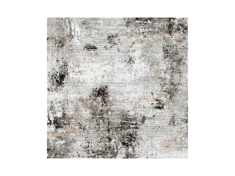 Machine woven, abstract design in black, gray, white and tan. 9mm pile. Polyester, backed with jute. Spot clean only. Rug pad recommended.
