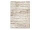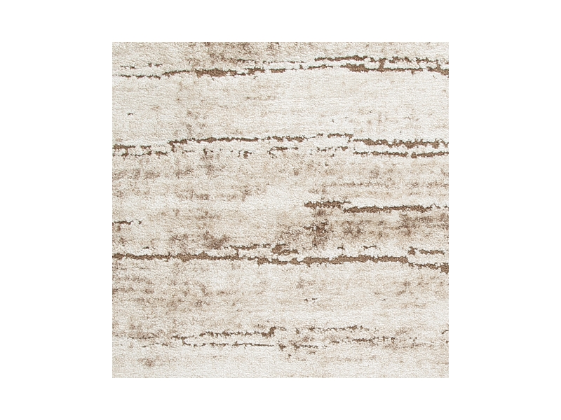 Machine woven high-low, abstract stripe design in cream and shades of brown. 18mm pile. Polyester shrink yarn/soft frieze polypropylene blend, backed with jute. Spot clean only. Rug pad recommended.
