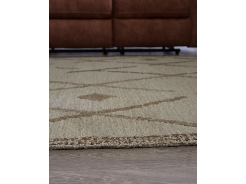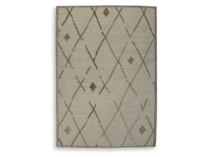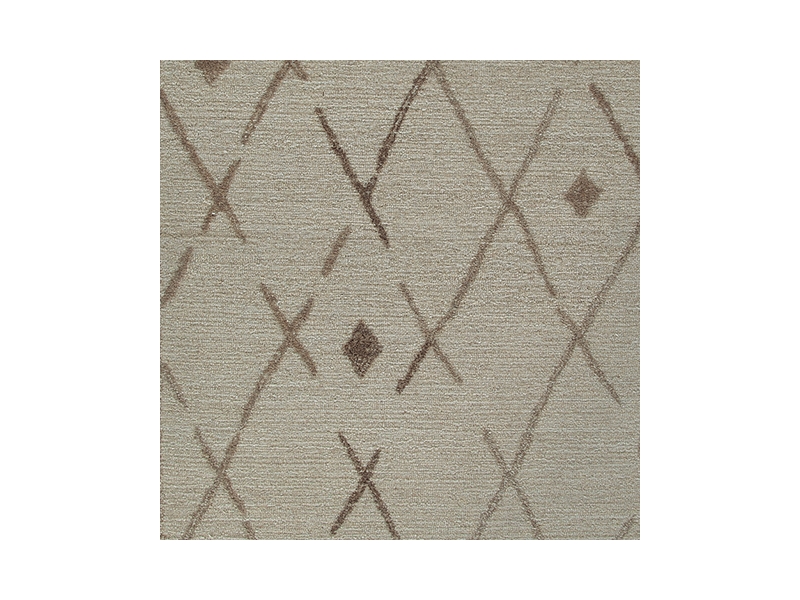 Hand tufted high-low, diamond design in beige and light brown. 7mm pile. Wool, backed with cotton. Spot clean only. Rug pad recommended. Due to the handcrafted nature of this product, some variation may occur.